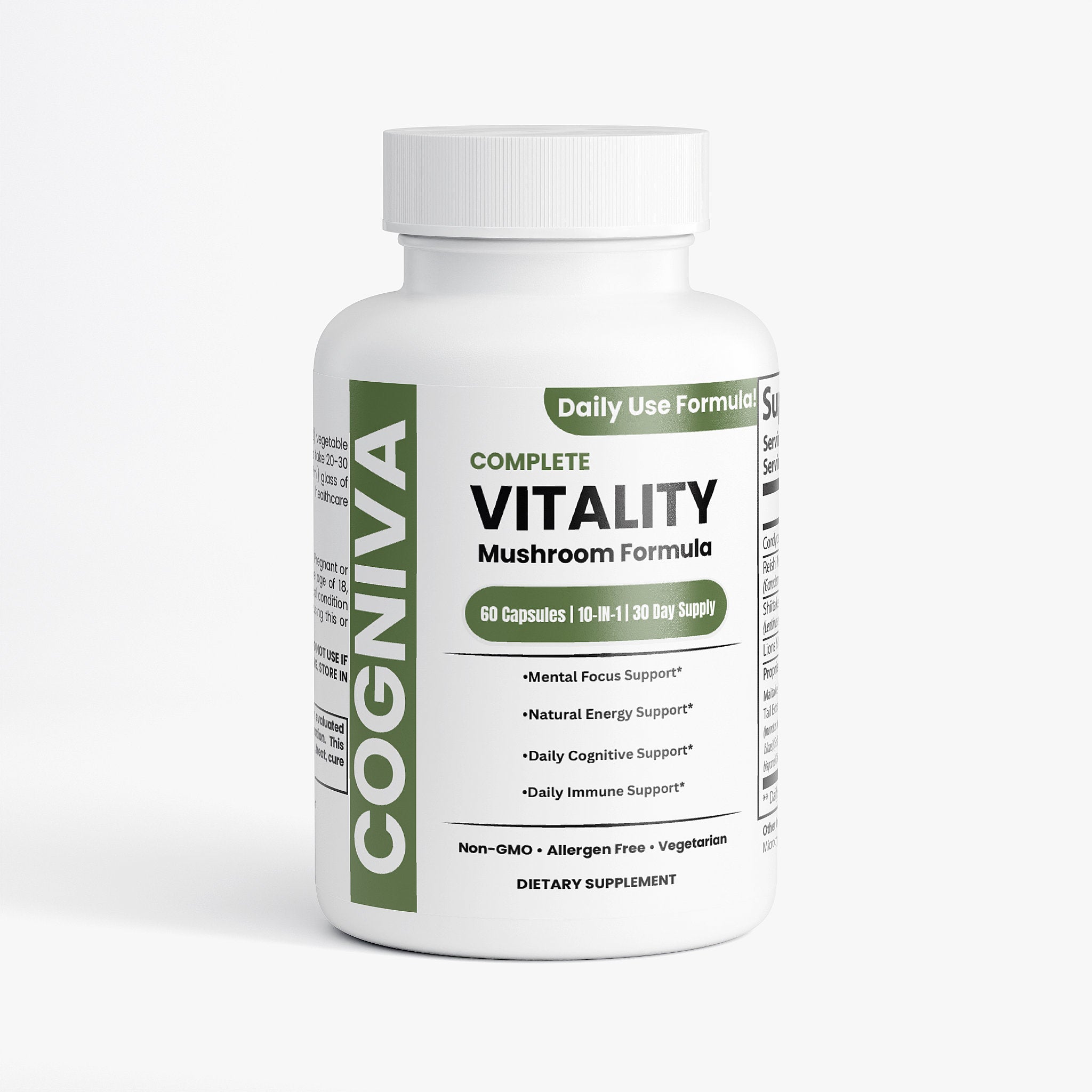 Our formula is suitable for a wide array of dietary needs - it’s vegan, gluten-free, and free from common allergens. This means anyone looking for a natural health boost can safely benefit from Vitality 10X Mushroom without compromising their dietary restrictions.