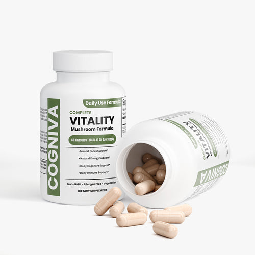 Vitality 10X Mushroom is made with a potent blend of medicinal mushrooms known for their health benefits. It features Chaga, Cordyceps, Reishi, Lion's Mane, and others, helping to boost brain function and support immune health, making it a fantastic addition to any wellness routine.