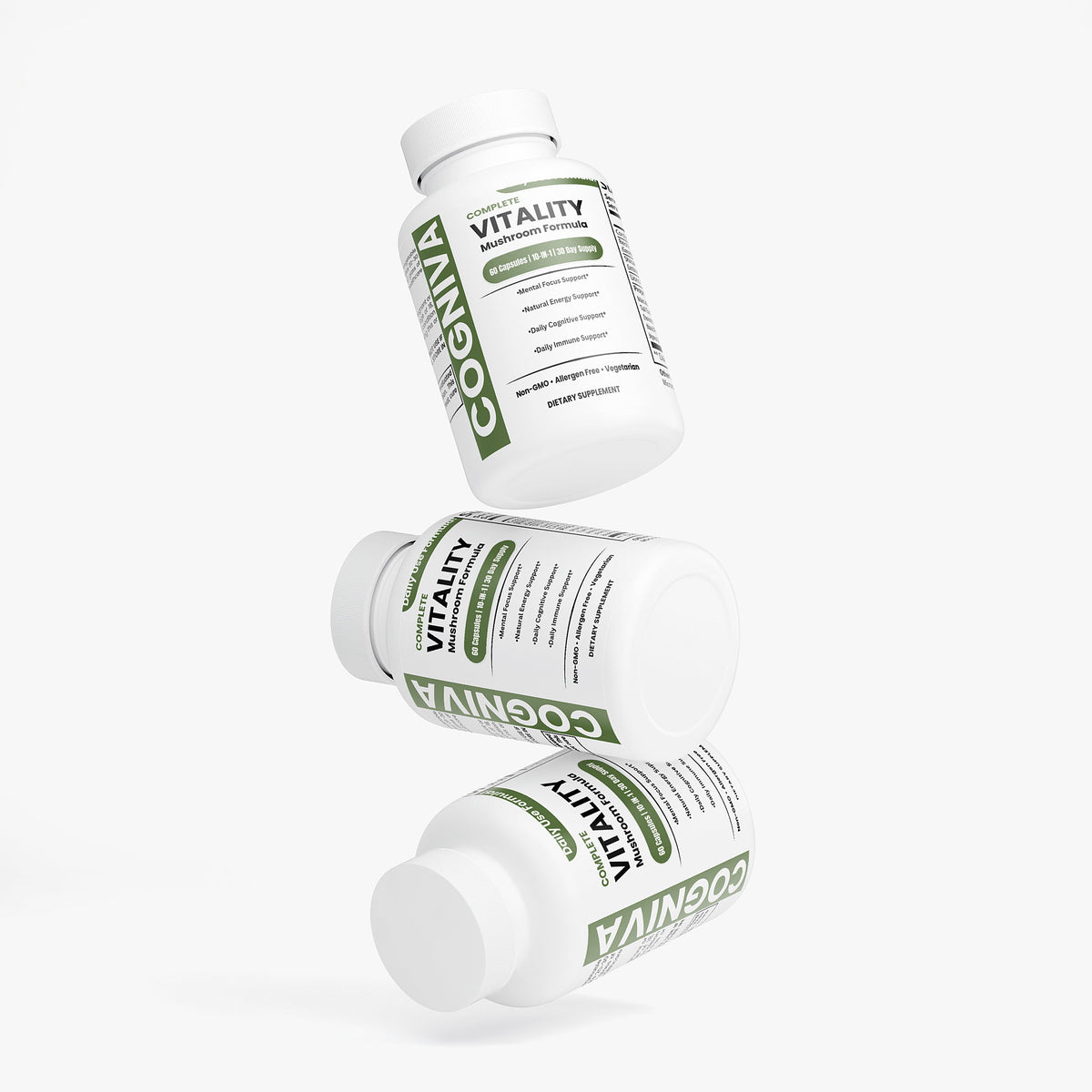 Each bottle contains 60 capsules, providing a full month's supply if taken as directed. With consistent use, you can experience the remarkable benefits of these medicinal mushrooms, from enhanced cognition to improved stress resilience.